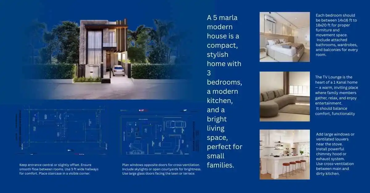 Design your dream home with our Modern 5 Marla House Plan, created for stylish living, efficient space use, and practical family comfort. This complete architectural package includes all construction drawings along with a modern front elevation that gives your home a premium and elegant appearance.
